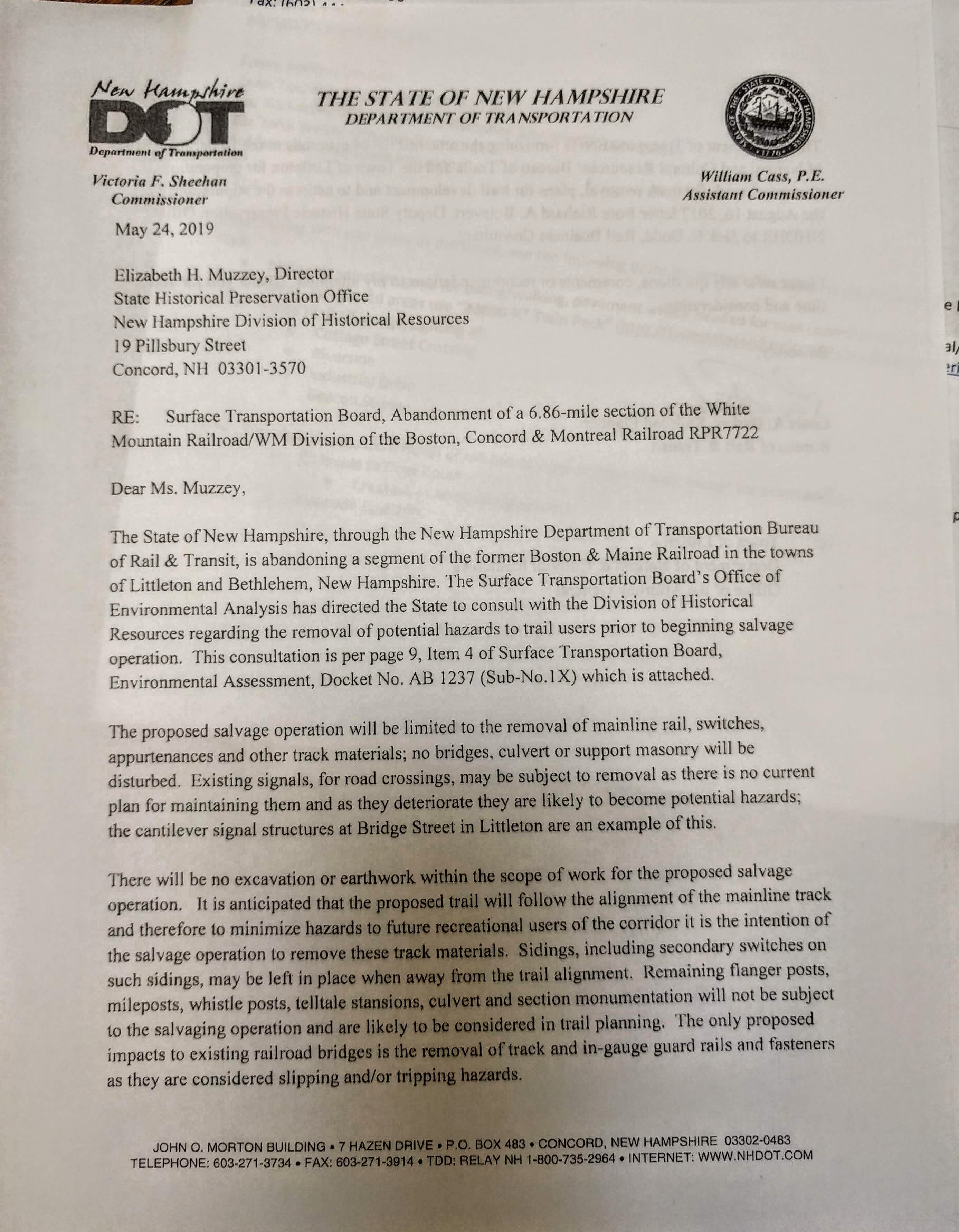8-16-2017: DNCR to Jack Dodd re. abandonment; must avoid impacts to "All railroad operation appertenances..."