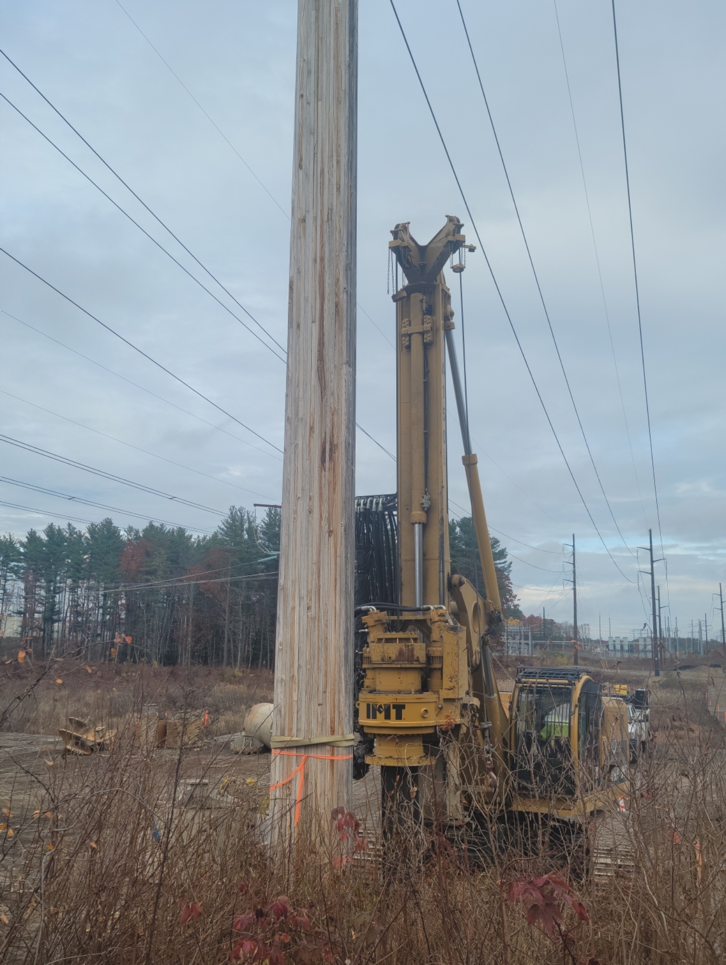 pole pile on trucked in gravel pad