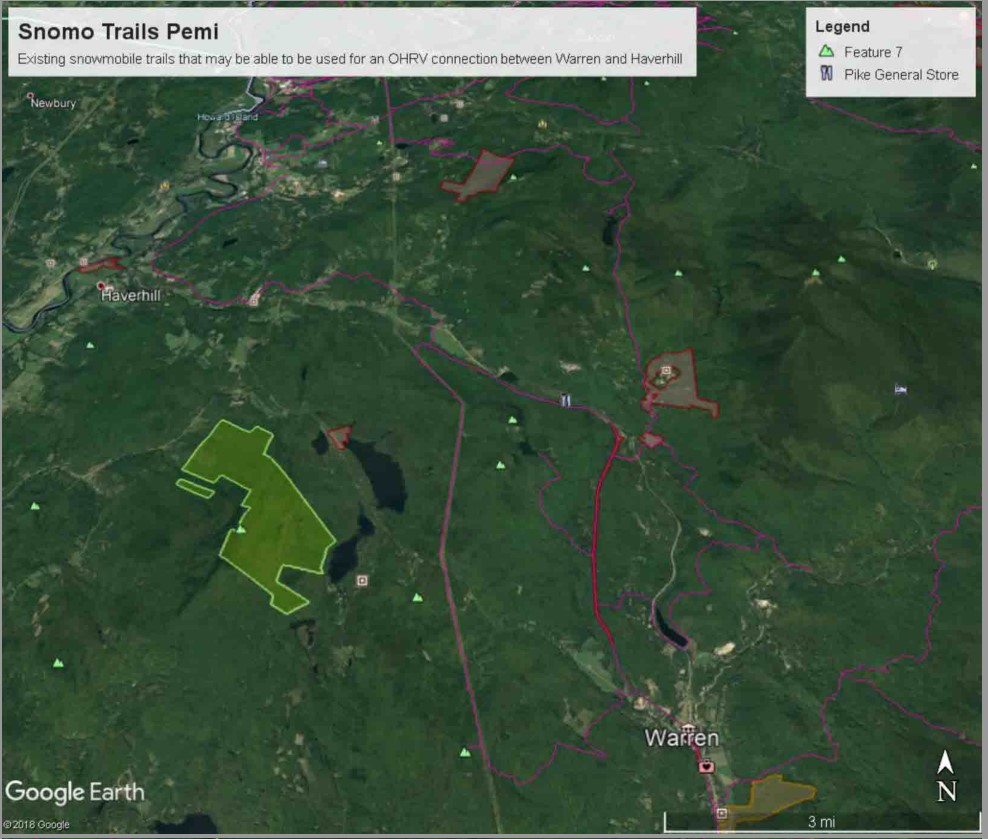 Map excerpt: BOT proposed ATV Trail Warren to Haverhill 2019